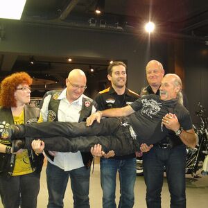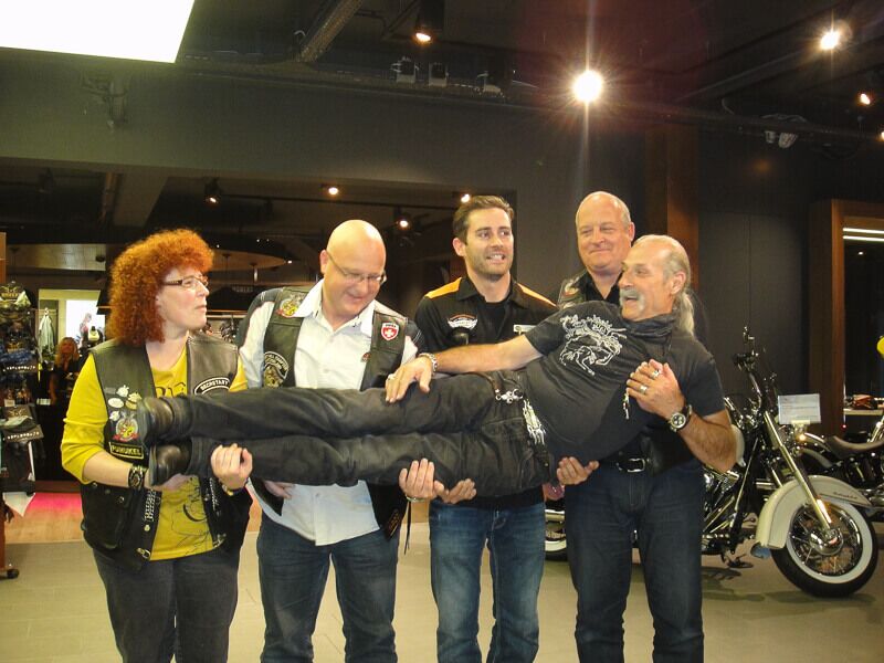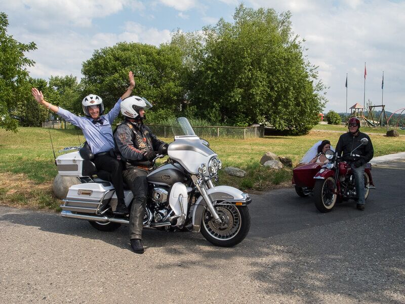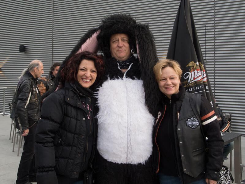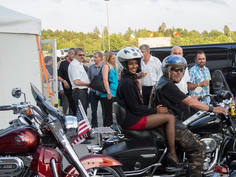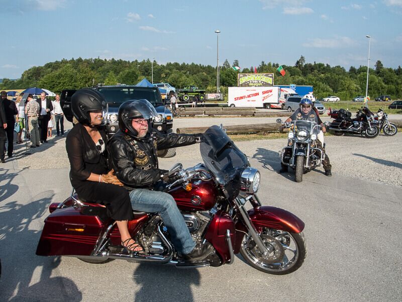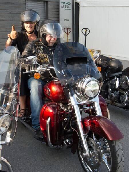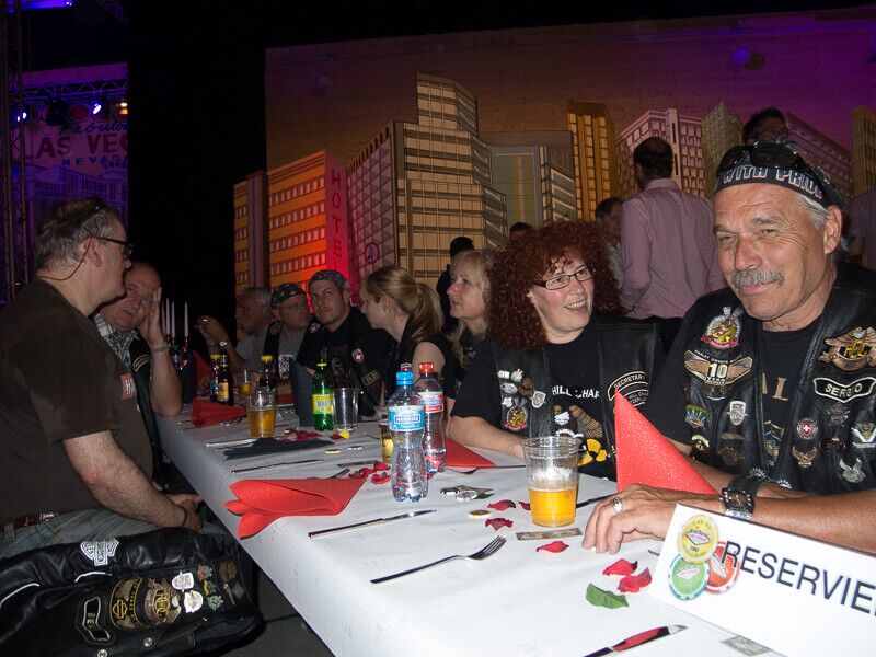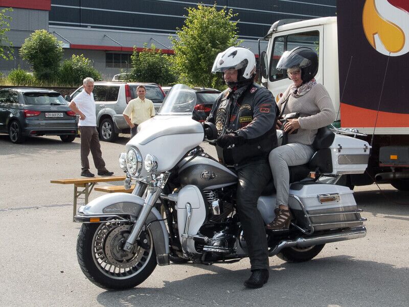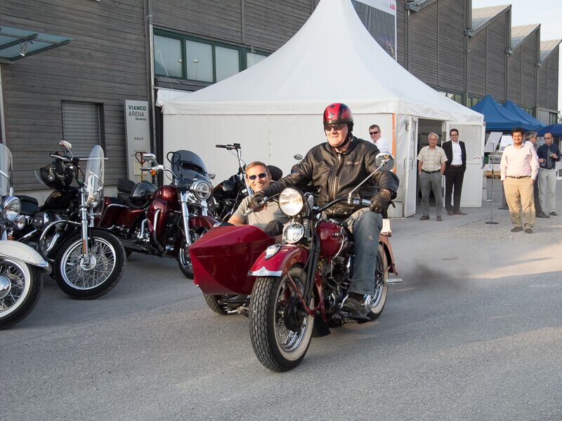 Gleichzeitig wurde ein Führungsmitglied (Leo) der ABB-Chefetage verabschiedet. Zu Beginn des Anlasses begleiteten wir Leo, der in einer Hummer-Limousine chauffiert wurde, im Konvoi vom Flughafen Birrfeld zur Vianco Arena. An vorderster Front Urs mit seinem Seitenwagen-Gespann. Passend zum Thema Las Vegas führte er eine Braut im Hochzeitskleid an Bord mit.