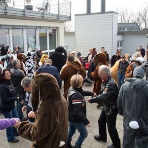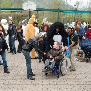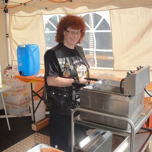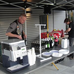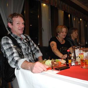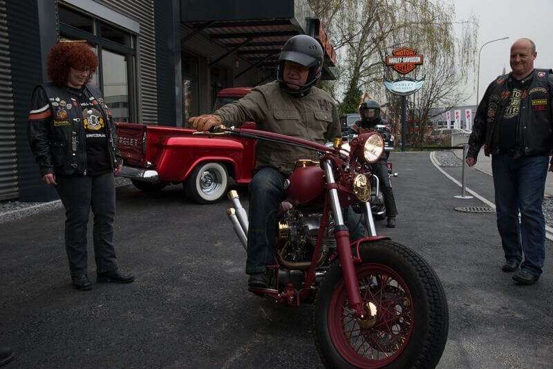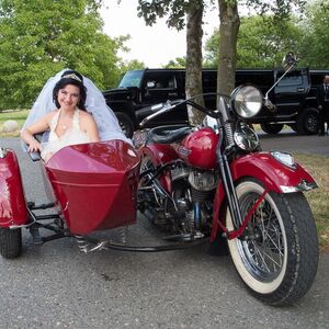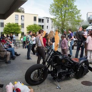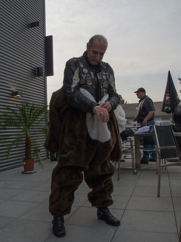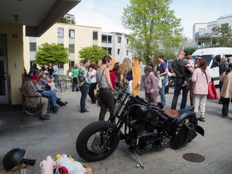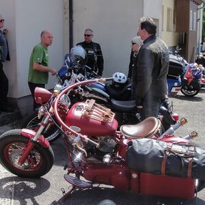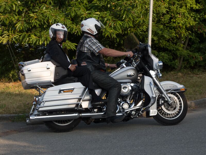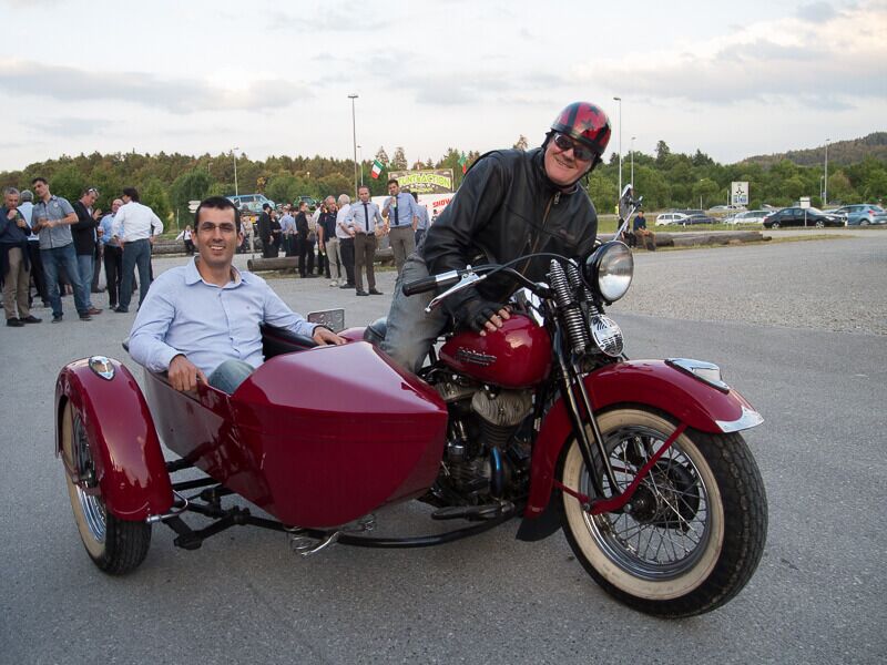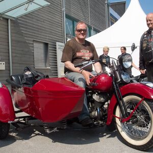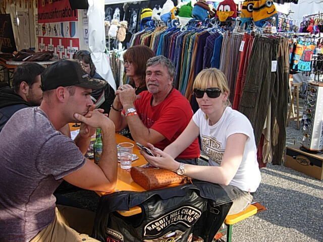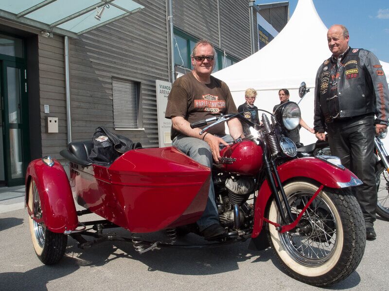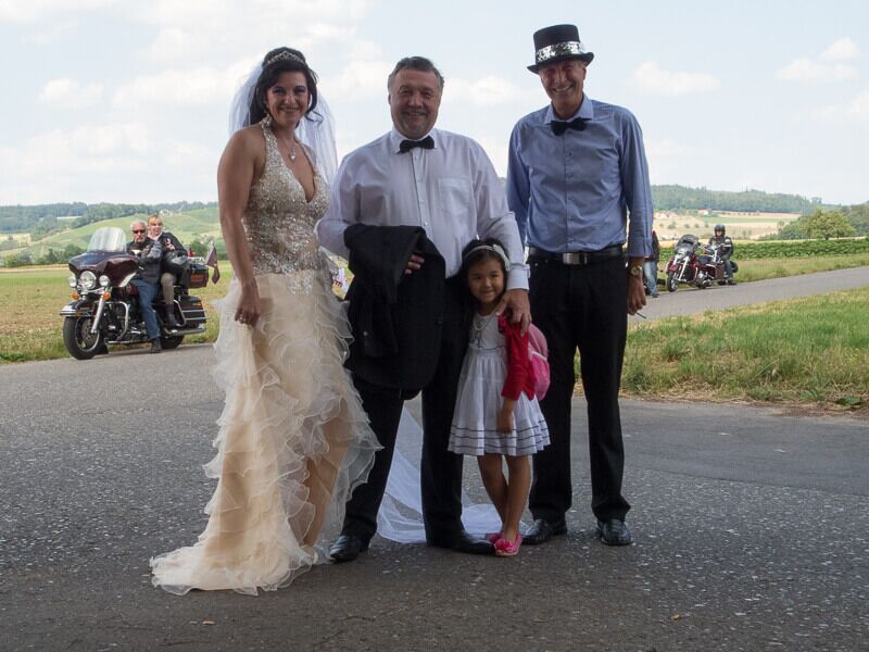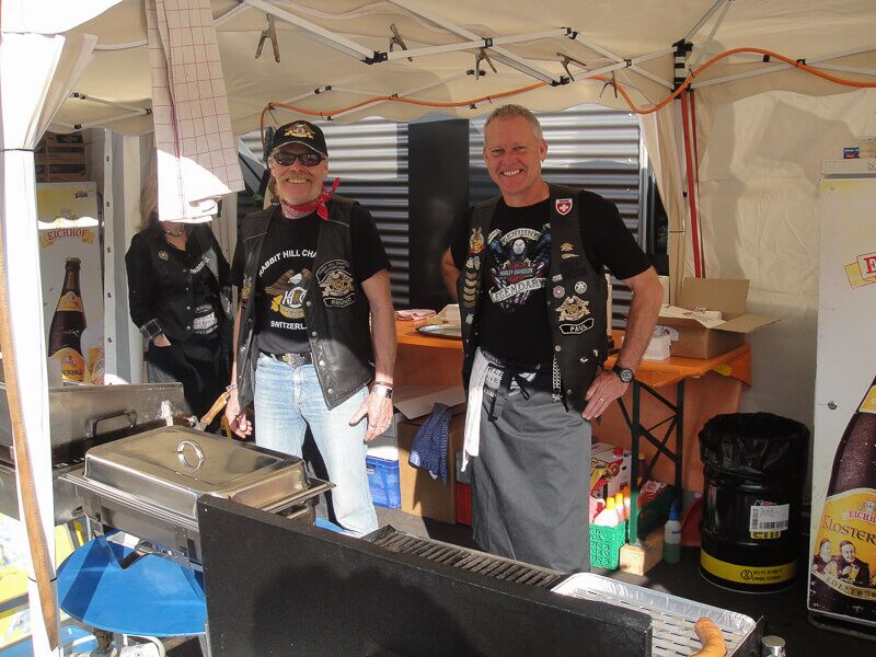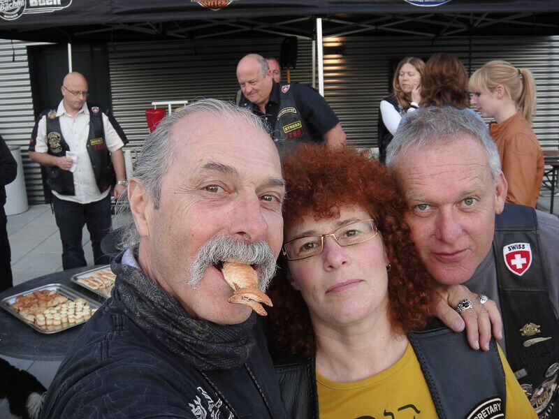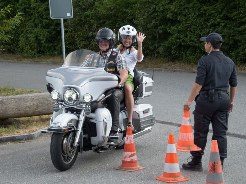 Die angebotenen Rundfahrten fanden, vor allem bei den weiblichen Gästen, grossen Anklang. Manch eine Dame im hübschen Abendkleid büschelte sich bei unseren strahlenden Rabbit-Herren auf dem Rücksitz zu Recht - immer mit der Frage konfrontiert: Ziehe ich jetzt meinen Rock hoch oder ganz aus? Urs forderte sein altes Seitenwagen-Gespann bis zum Letzten und fuhr unter Knattern und Knallen Runde um Runde.