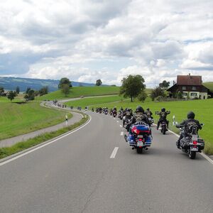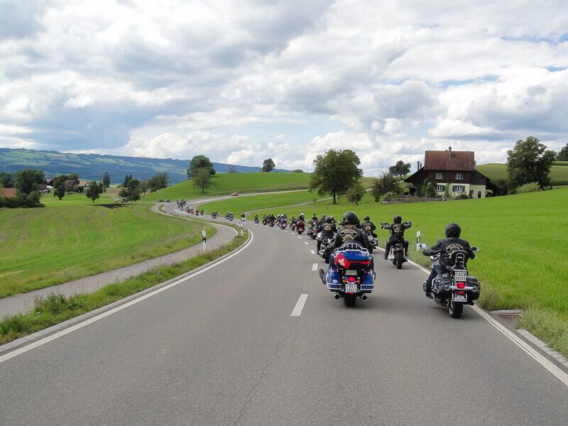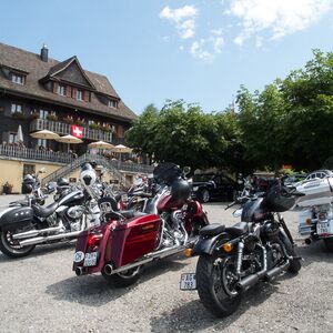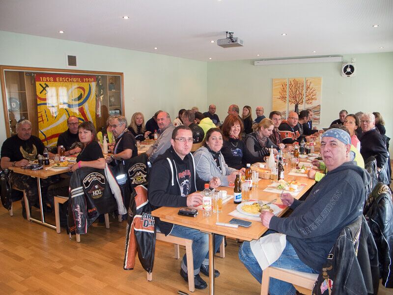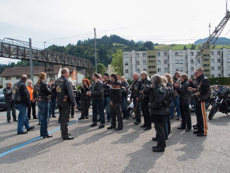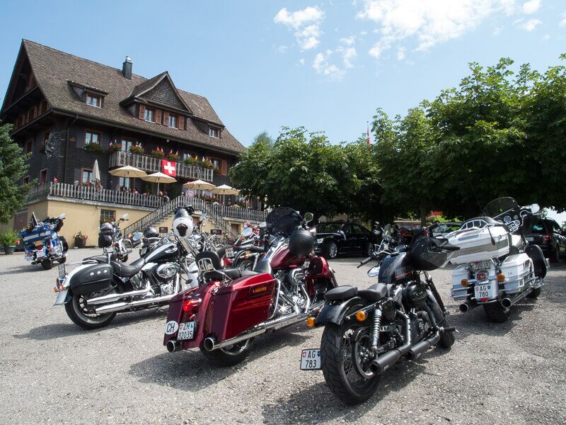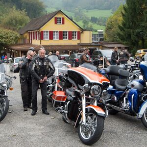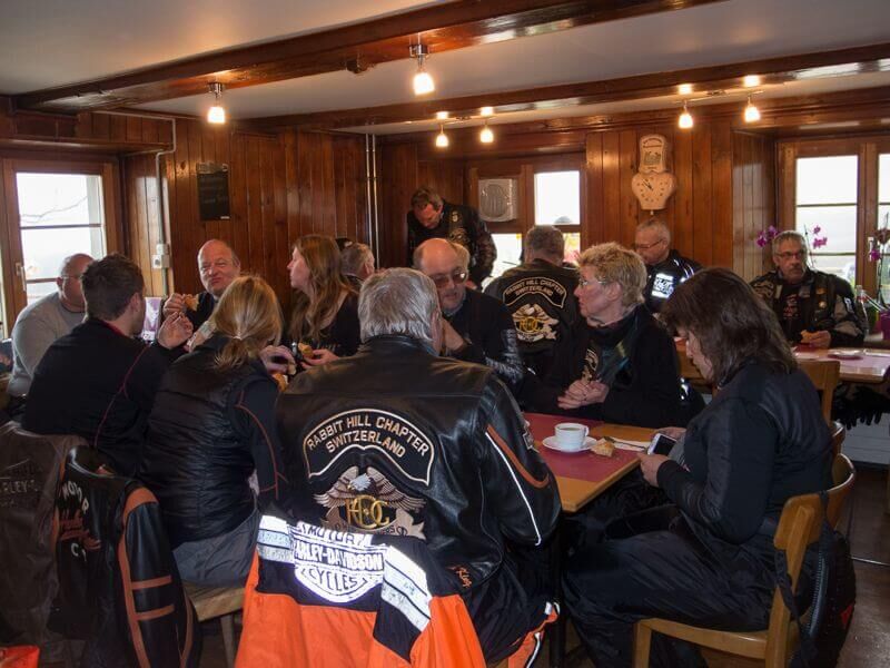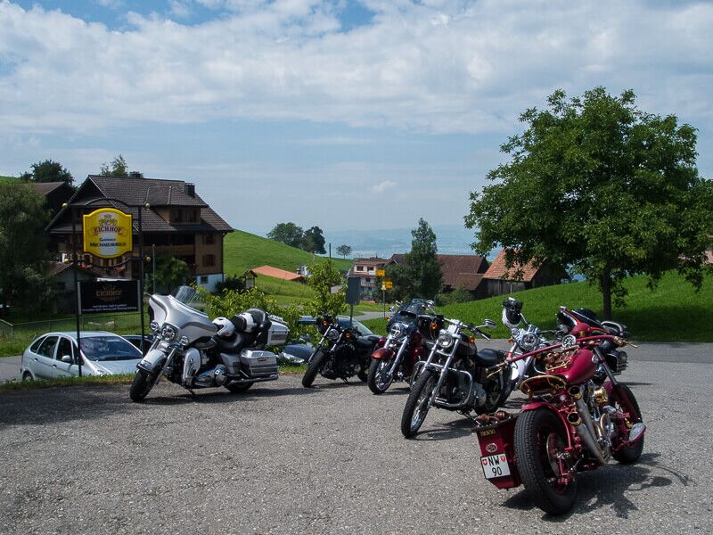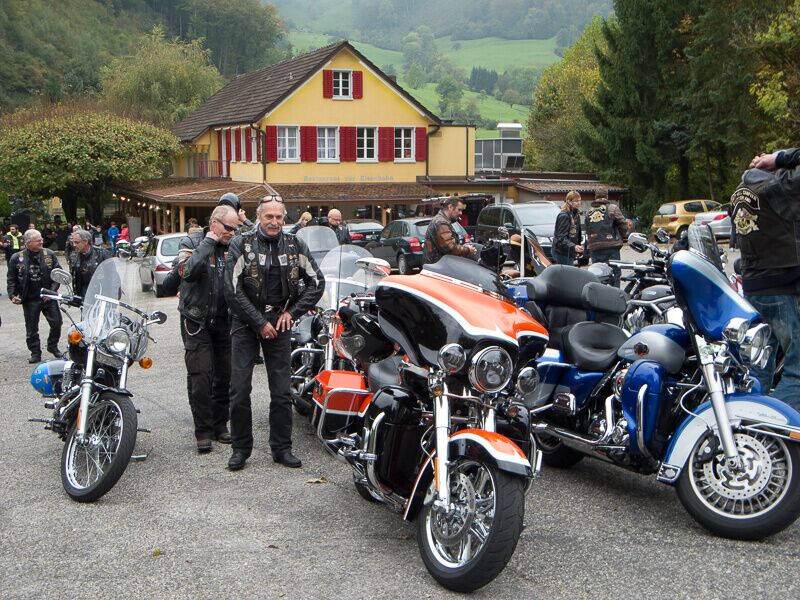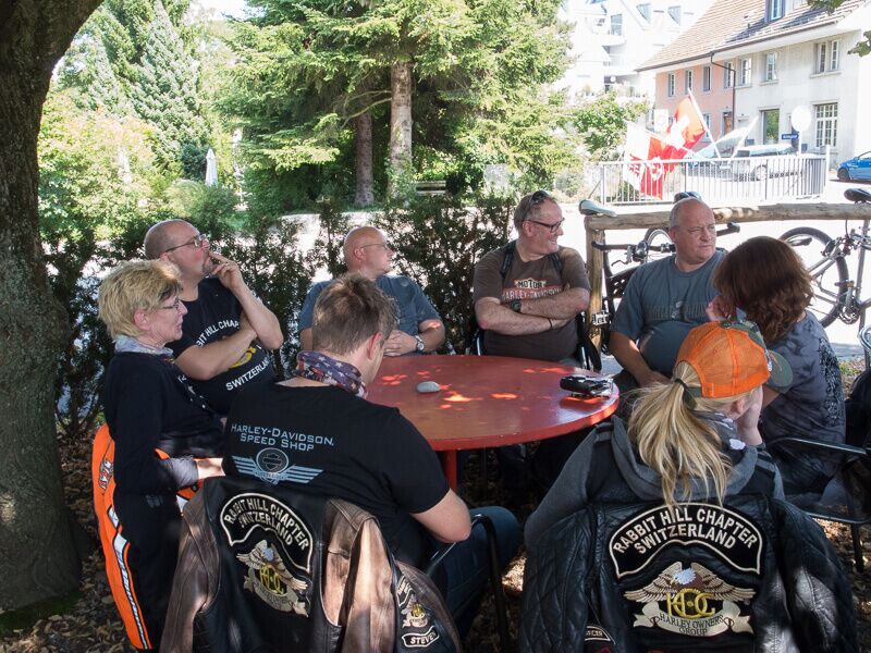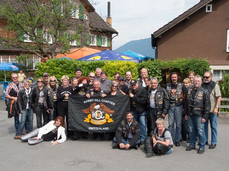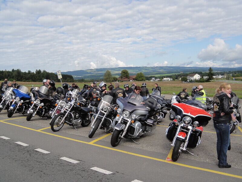 Wir versammelten uns am 24.08.2014 um 09.00 Uhr beim Restaurant Da Rocco in Hünenberg. Nach und nach trafen die Member des Hoursemountain-, Northwest-, William Tell- und unseres Rabbit-Hill-Chapters ein. An der gut organisierten Ausfahrt „ohne Regen“ nahmen rund 90 Harley Davidson-Begeisterte teil.