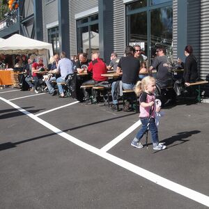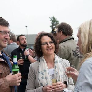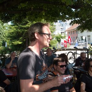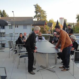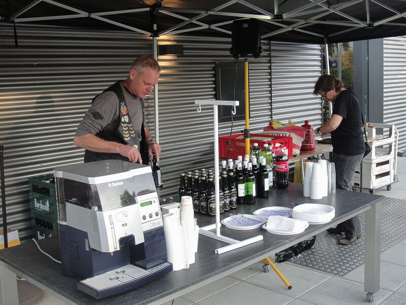 Unter tosendem Beifall der ABB-Mitarbeiter trafen wir auf dem Gelände in Brunegg ein, welches vom Sicherheitspersonal abgeriegelt wurde. Beim Apéro trafen nach und nach die letzten Gäste ein, welche mit Postautos hingeführt wurden.