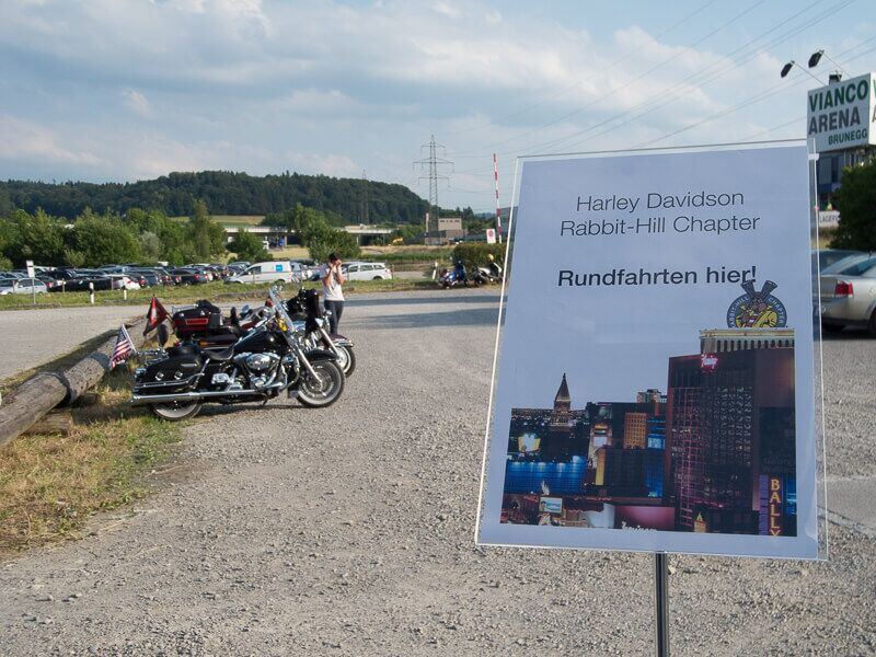 Bei warmen Temperaturen folgten 12 Rabbit‘s dem Aufruf unseres Head Road Captain Emi zum ABB-Event in der Vianco Arena Brunegg. Dort fand ein Mitarbeiter-Anlass unter dem Thema „Las Vegas“ statt und wir sollten als besondere Attraktion die Faszination Harley Davidson vermitteln und kleine Rundfahrten anbieten.