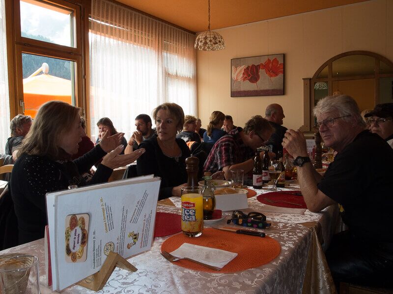 Am Morgen führte uns die Tour über das Michaelskreuz, Küssnacht, Brunnen, Lauerz und Schwyz bis hinauf zum Restaurant Haggenegg. Mit einer wunderbaren Aussicht ins Tal genossen wir das Mittagessen, bestehend aus einer wärmenden Bouillon und Älplermakaronen mit Apfelschnitzen.