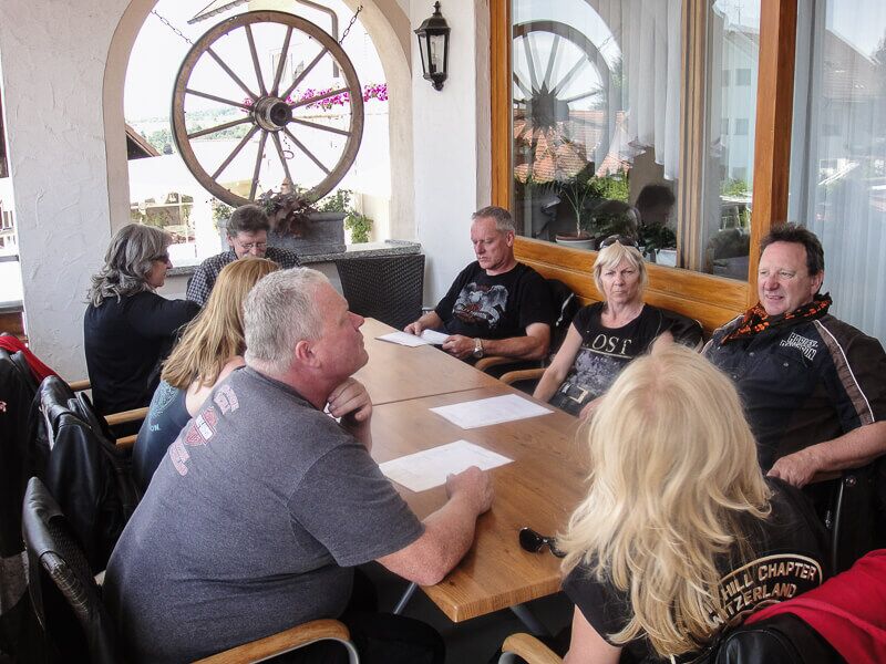 Elf mutige Ladies of Harley sind im Stammlokal Café am Bach in Würenlos eingetroffen, um mit Edith, LOH Officer, einen angenehmen Tag auf 2 Rädern zu verbringen. Die Tour führte Richtung Schwarzwald und nach einer Kaffeepause und einem feinen Mittagessen sind wir wieder mit nicht "ganz perfektem" Wetter heimwärts gerollt.